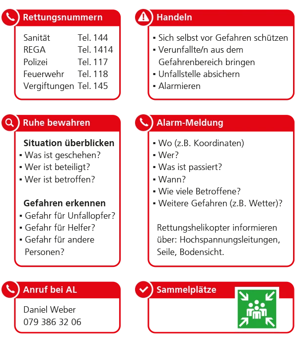 • 13 Verhalten bei Unfällen, Sammelplätze